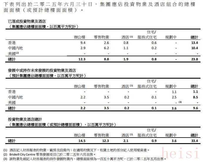 集團在香港及中國內(nèi)地以外的投資物業(yè)組合原包括美國邁阿密Brickell City Centre項目的購物中心及停車位,該等物業(yè)已于2025年6月完成出售。