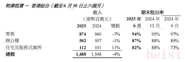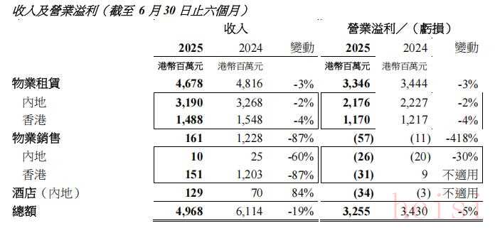 2025年上半年,來自中國內(nèi)地投資物業(yè)的應(yīng)占租金收入總額為30.73億港元,同比持平。