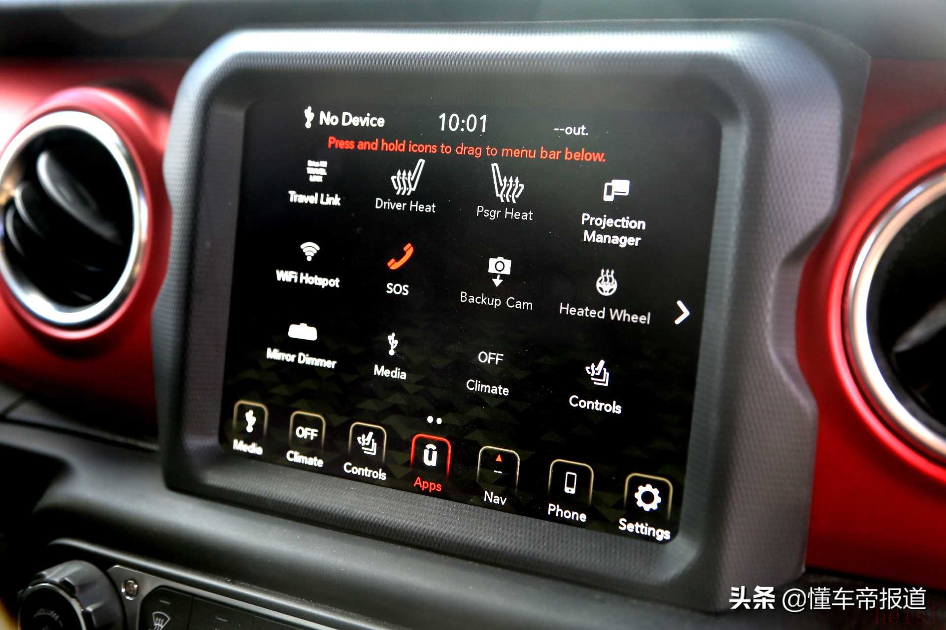 Gladiator在內(nèi)裝與現(xiàn)行款Jeep無(wú)太多差異采用水平式分層設(shè)計(jì)。