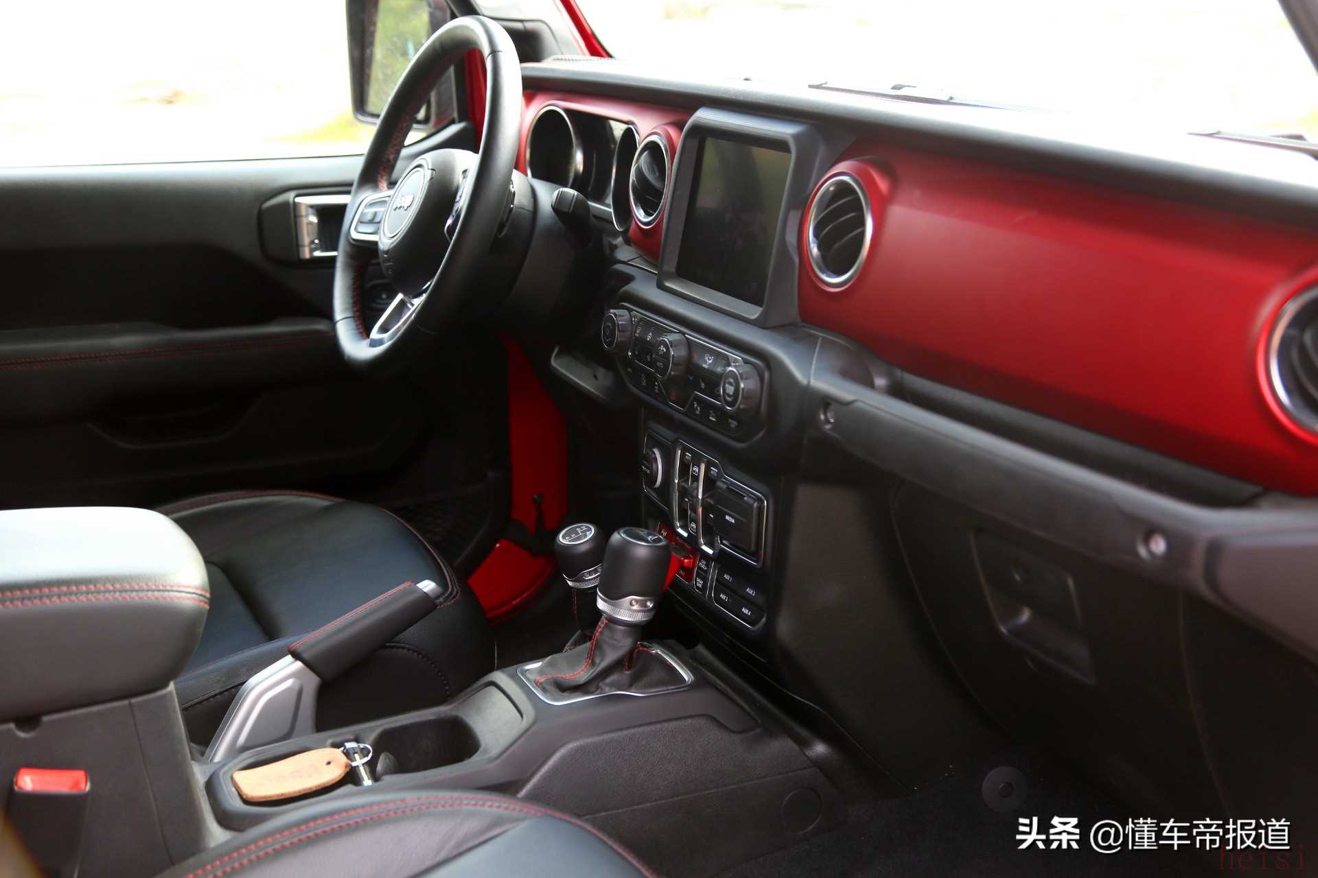 Gladiator Rubicon輔以縫線裝飾的包裹式雙環(huán)儀表板搭配7英寸LED螢?zāi)弧?/p>