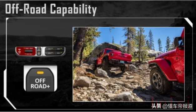 同時(shí),在Off Road+功能的作用下,Jeep Gladiator不僅低速巖石翻越調(diào)教提升,高速沙地行駛濾震性也大為提升,Gladiator同時(shí)也將油門(mén)踏板、變速箱、ABS、牽引力控制、ESC車身穩(wěn)定系統(tǒng)都進(jìn)行了專門(mén)調(diào)教。在此之上,當(dāng)野外露營(yíng)之時(shí),按下AUX1-4輔助按鈕的時(shí)候,車輛的售后電子連接與集成服務(wù)將開(kāi)啟,在漆黑的夜晚將提供越野照明、尾門(mén)照明以及前保險(xiǎn)杠絞盤(pán)。不過(guò)我個(gè)人最喜愛(ài)的功能卻是叫做TrailCam的越野前視攝像頭,它在我越野駕駛的時(shí)候提升了前方視野,動(dòng)態(tài)可視化車輪能將前方的路徑完全的呈現(xiàn)在眼前。