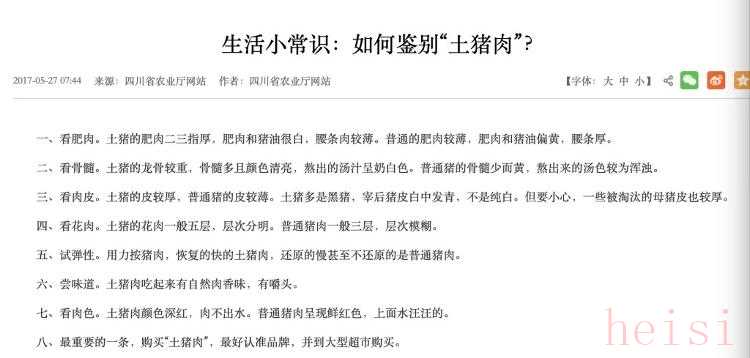 四川省農(nóng)業(yè)農(nóng)村廳貼出的辨別“土豬肉”生活小常識(shí)。