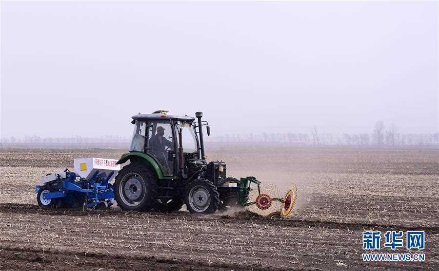 4月23日,吉林省榆樹市弓棚鎮(zhèn)農(nóng)民在播種玉米。新華社記者 林宏 攝