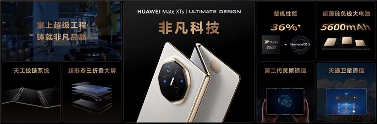 同時(shí),發(fā)布會(huì)公布了華為 Mate XTs 非凡大師的核心參數(shù):該機(jī)型為三折疊設(shè)計(jì),展開(kāi)后屏幕尺寸 10.2 英寸,分辨率 3K,屏占比 92%;搭載天工鉸鏈系統(tǒng),機(jī)身最薄處 3.6 毫米;屏幕采用復(fù)合超韌疊層結(jié)構(gòu),配備 322cm2 UTG 玻璃及非牛頓流體材料。