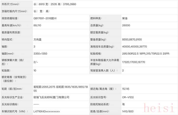 其中,R系列的車身尺寸為6910mm*2535mm*3795mm,軸距3350mm+1350mm。根據(jù)不同配置,車身整備質(zhì)量分為5.55噸、8.87噸和9.1噸。整車采用前2后8,一共10個車輪的三軸組合。