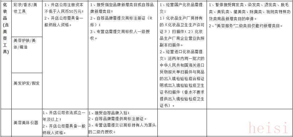 美發(fā)護(hù)發(fā)/假發(fā)/美容護(hù)膚/美體/精油5個(gè)類(lèi)目,入駐門(mén)檻則由“注冊(cè)資本不低于人民幣50萬(wàn)元”,變更為“注冊(cè)資本不低于人民幣100萬(wàn)元”。