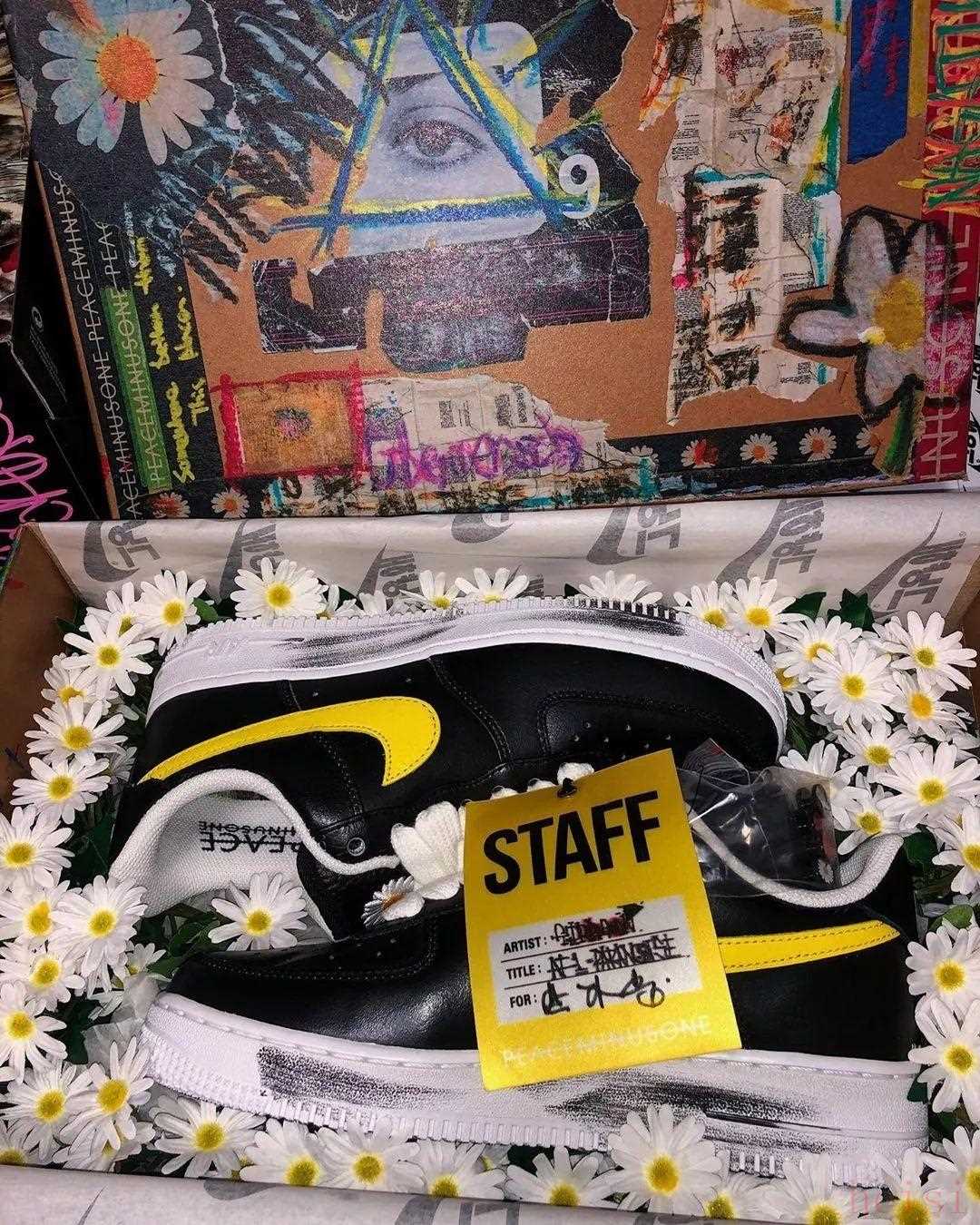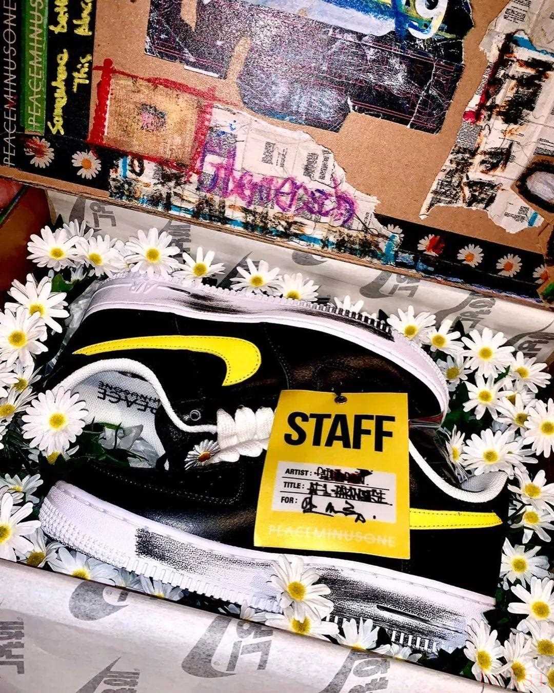 ?PMO? x Nike Air Force 1 鞋款被大家津津樂(lè)道的遠(yuǎn)不止鞋身簽名式的 PMO? 小雛菊和鞋內(nèi)「PEACEMINUSONE」字樣的細(xì)節(jié)設(shè)計(jì)。由 GD 本人和品牌逐步為大家演示的鞋帶反穿、剪后跟的新奇玩法,惹來(lái)無(wú)數(shù)網(wǎng)友爭(zhēng)相模仿。