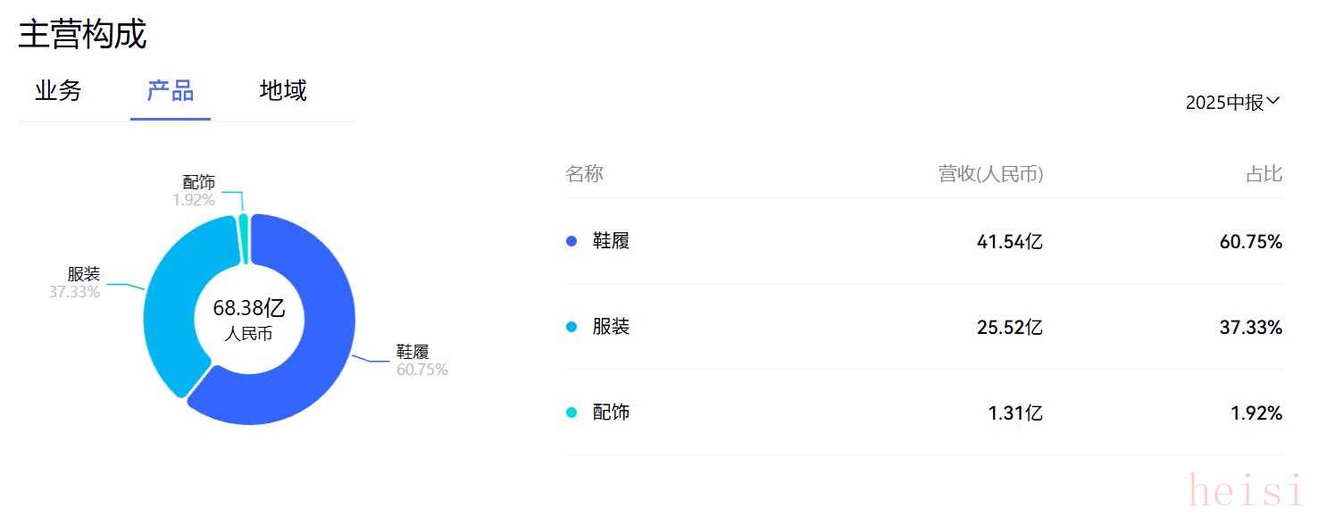 產(chǎn)品結(jié)構(gòu)上,特步的收入重心仍向鞋類傾斜——上半年鞋類收入占集團(tuán)總營收比例超60%,約為41.54億元,品類多元化程度有待提升。