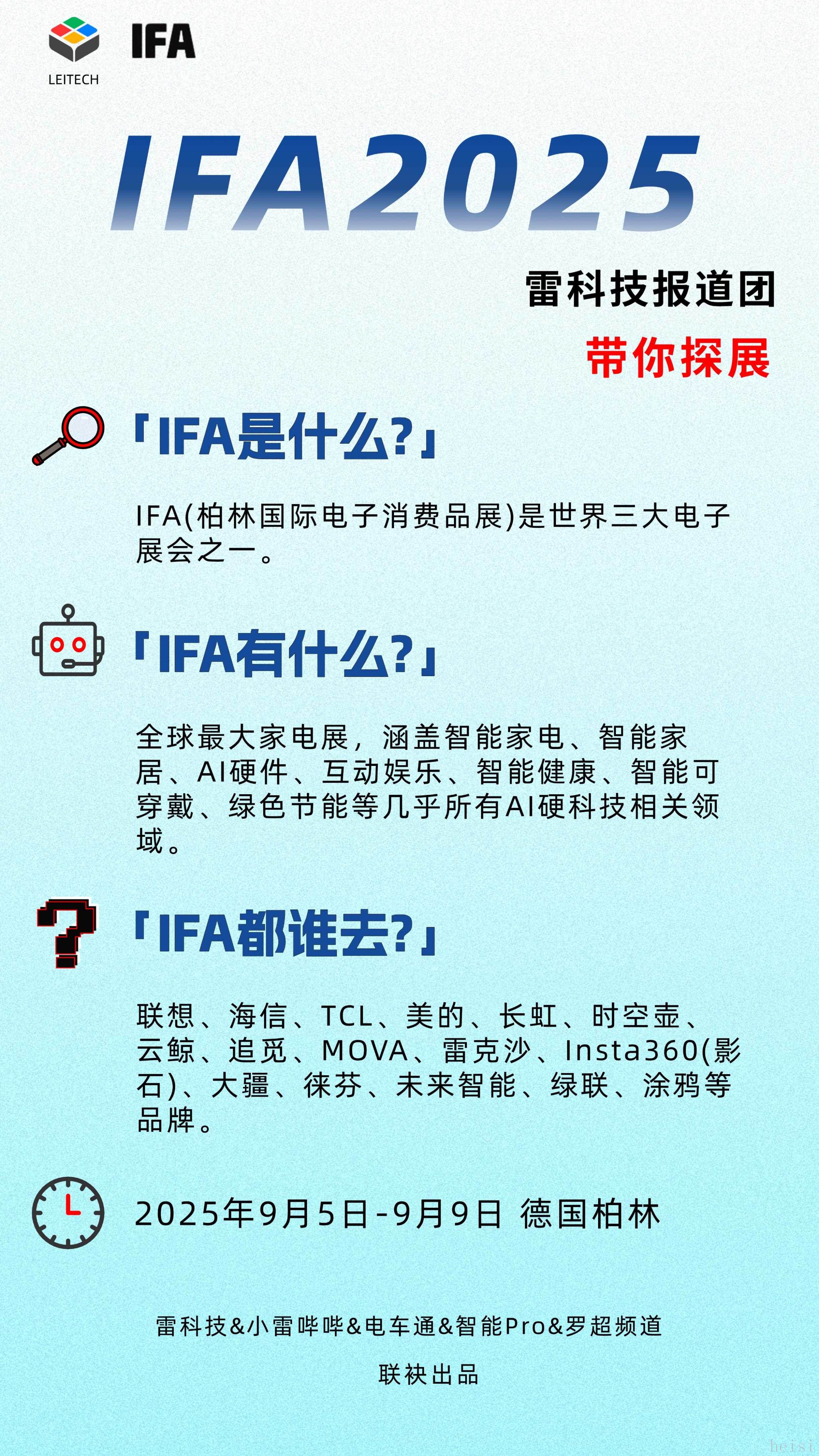 雷科技IFA2025報道團已在現(xiàn)場就位,對AI硬科技的新趨勢,特別是中國品牌在世界級大秀進行全程追蹤報道,敬請關注!