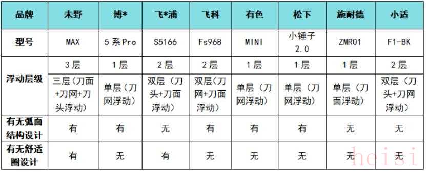 浮動(dòng)層級(jí)——三層浮動(dòng)結(jié)構(gòu)(緊密貼合輪廓,死角剃凈率高)