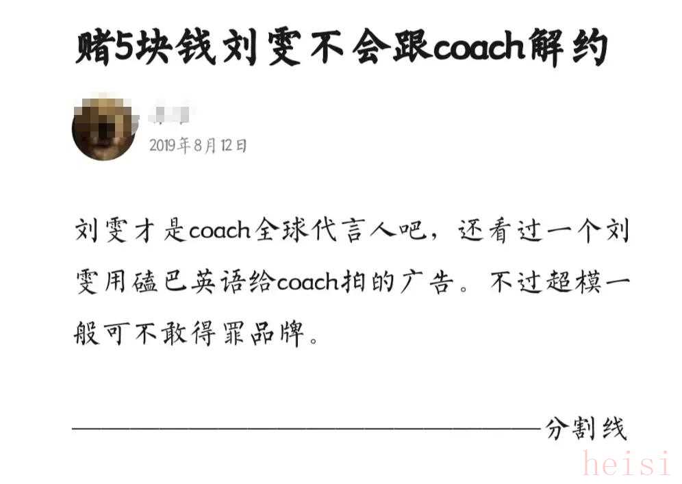 有人調侃“賭五塊錢劉雯不會跟Coach解約”。