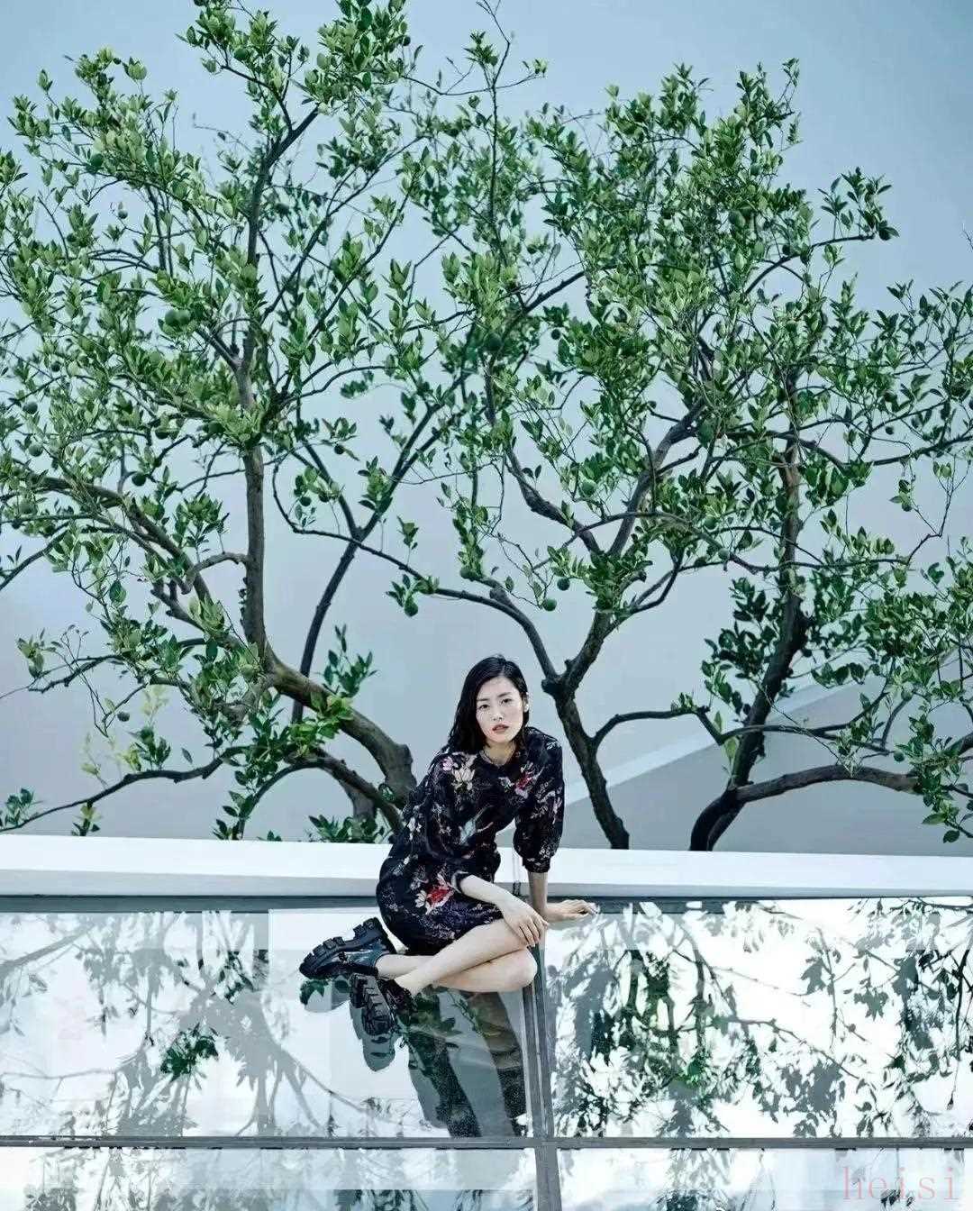 陽光正好的時候,劉雯坐在玻璃屋頂下,淋著一身綠蔭,半身光瓣,晃著雙腿,宛如畫中人。