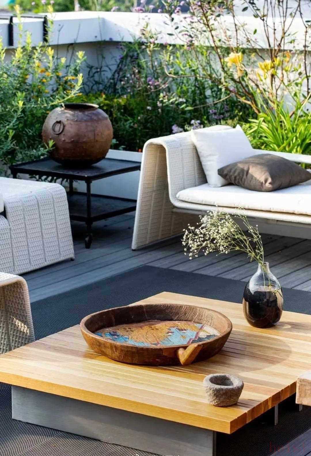 院落溫馨。花草錯落有致。既時尚,又安逸。