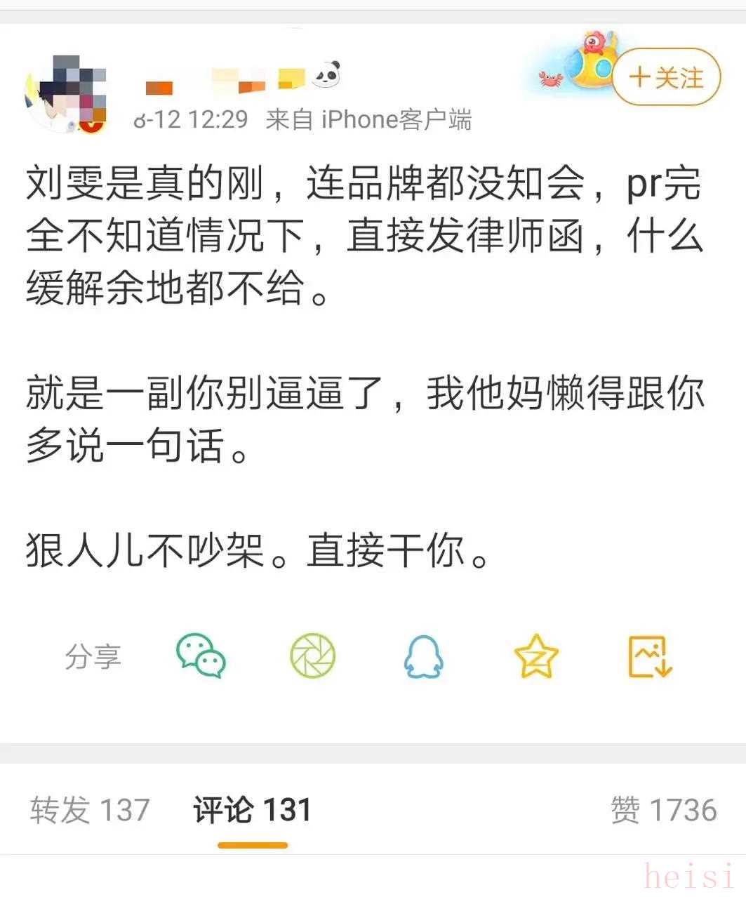 據知名大V透露,劉雯甚至未事先知會品牌,不留任何余地。