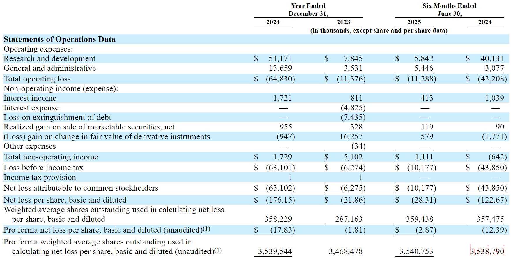 LB Pharmaceuticals在2025年上半年運(yùn)營(yíng)虧損為1129萬(wàn)美元,上年同期的運(yùn)營(yíng)虧損為4321萬(wàn)美元;歸屬于普通股股東的凈虧損為1018萬(wàn)美元,上年同期的歸屬于普通股股東的凈虧損為4385萬(wàn)美元。