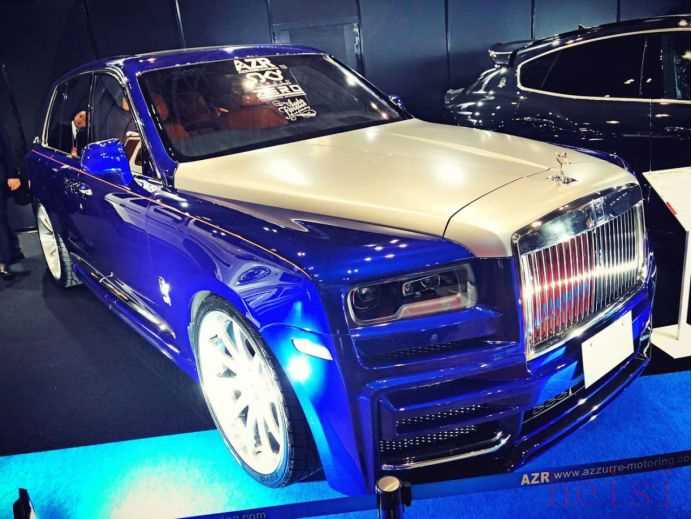 同樣出自AZR,旁邊這臺(tái)勞斯萊斯-庫(kù)里南的包圍可比大G夸張多了,22英寸的超大輪轂、雙色車身、再配上純金打造的歡慶女神車標(biāo),無(wú)不凸顯著它的高貴與奢華。