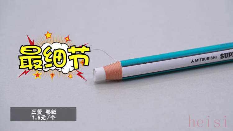 它操作是要先利用繩子將外皮撕開一個口子,然后內(nèi)層的卷紙才能一層層剝開。所以,橡皮每次露出來的長短是可以控制的。