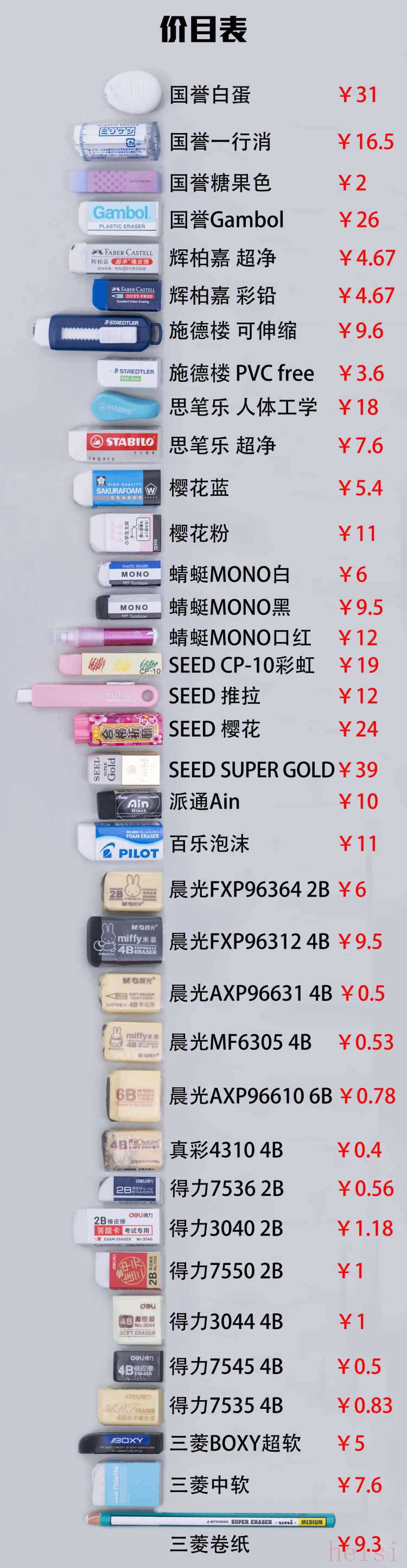 想知道各款橡皮的詳細(xì)品牌型號,及參考價格的,可以拉到文末,查看周到君制作的列表。