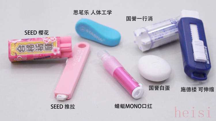 除了這些比較新奇特的外觀設(shè)計,有些品牌還推出了各種多棱角的,比如,SEED的櫻花,粉紅色的,櫻花的外形,剛一拿出來,就引得一些女孩子一陣尖叫,都覺得它很美;再比如國譽(yù)的一行消;還有走人體工學(xué)路線的思筆樂人體工學(xué)、國譽(yù)白蛋,手感真的很好,但是……去污都不行!