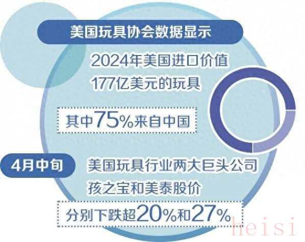 美國(guó)玩具行業(yè)兩大巨頭公司孩之寶和美泰首當(dāng)其沖,在美國(guó)宣布所謂“對(duì)等關(guān)稅”政策后,4月中旬,孩之寶和美泰股價(jià)分別下跌超20%和27%。