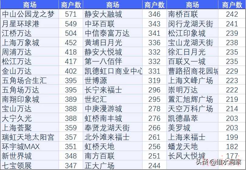 目前上海超過3萬㎡的在營商場有400家之多,排名從上海數(shù)百家商場中,設(shè)定了20個選評估指標(biāo),通過相關(guān)數(shù)據(jù)的分析,整理了排名。