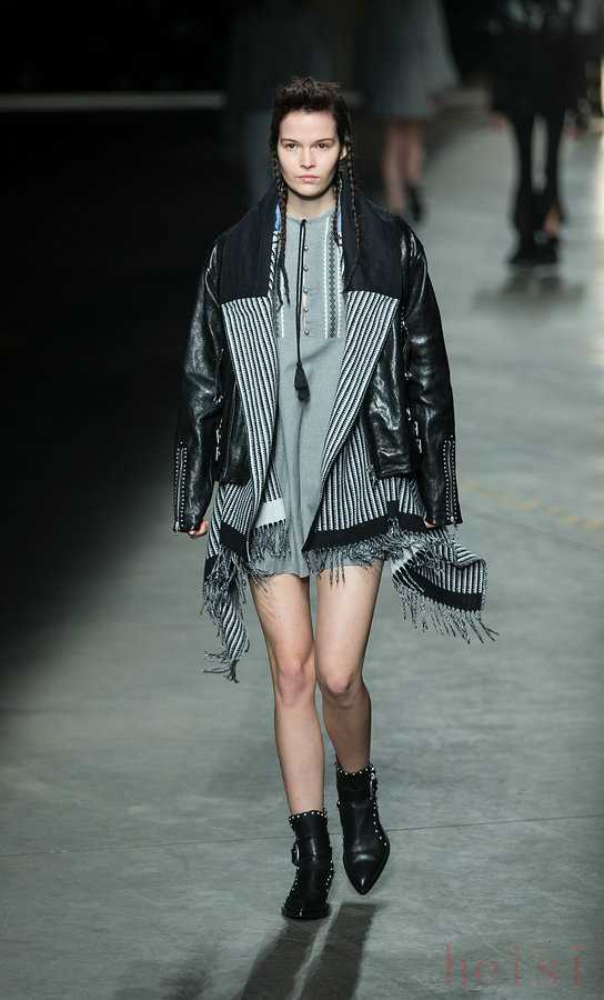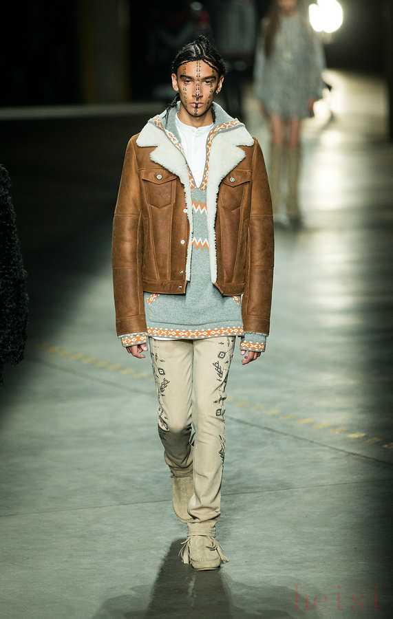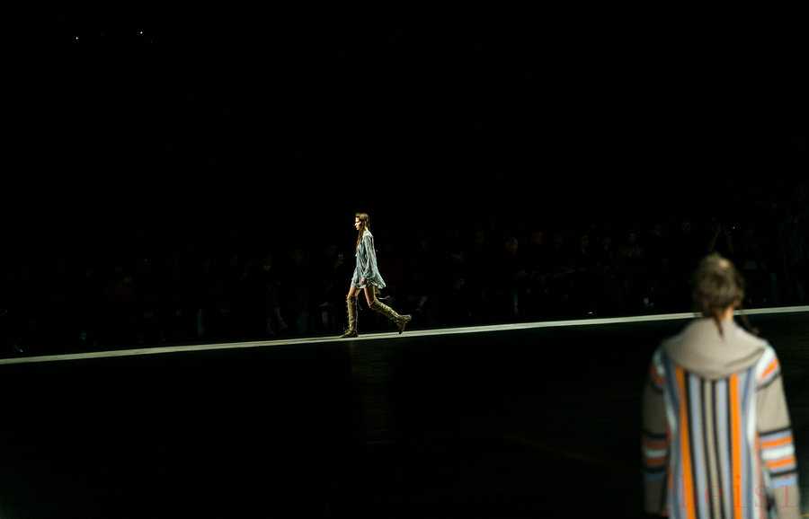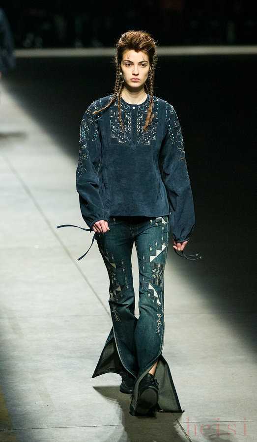 1月13日,在意大利米蘭,模特展示迪賽黑金(Diesel Black Gold)品牌2018/19秋冬新品。 當(dāng)日,迪賽黑金整合發(fā)布2018/19秋冬男裝、女裝新品。 新華社記者金宇攝