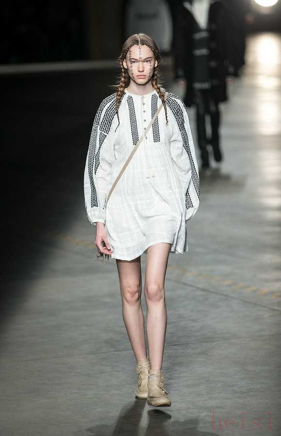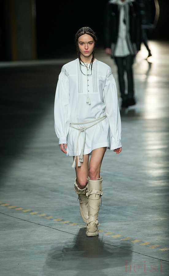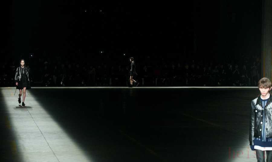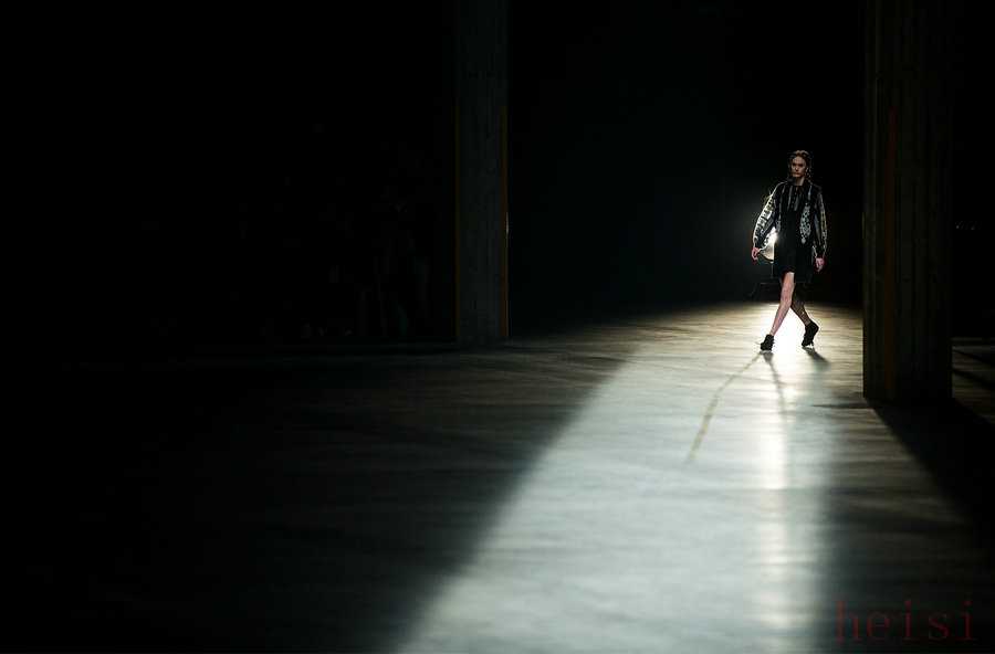 迪賽的女裝系列展現(xiàn)了一種充滿(mǎn)流動(dòng)感和結(jié)構(gòu)感的矛盾美學(xué)。黑色依然是主調(diào),但設(shè)計(jì)師通過(guò)金色的點(diǎn)綴——無(wú)論是啞光或閃耀的金屬面料、金色的刺繡、縫線、鉚釘,還是金色的配飾——為沉靜的黑色基底注入了活力與奢華感。