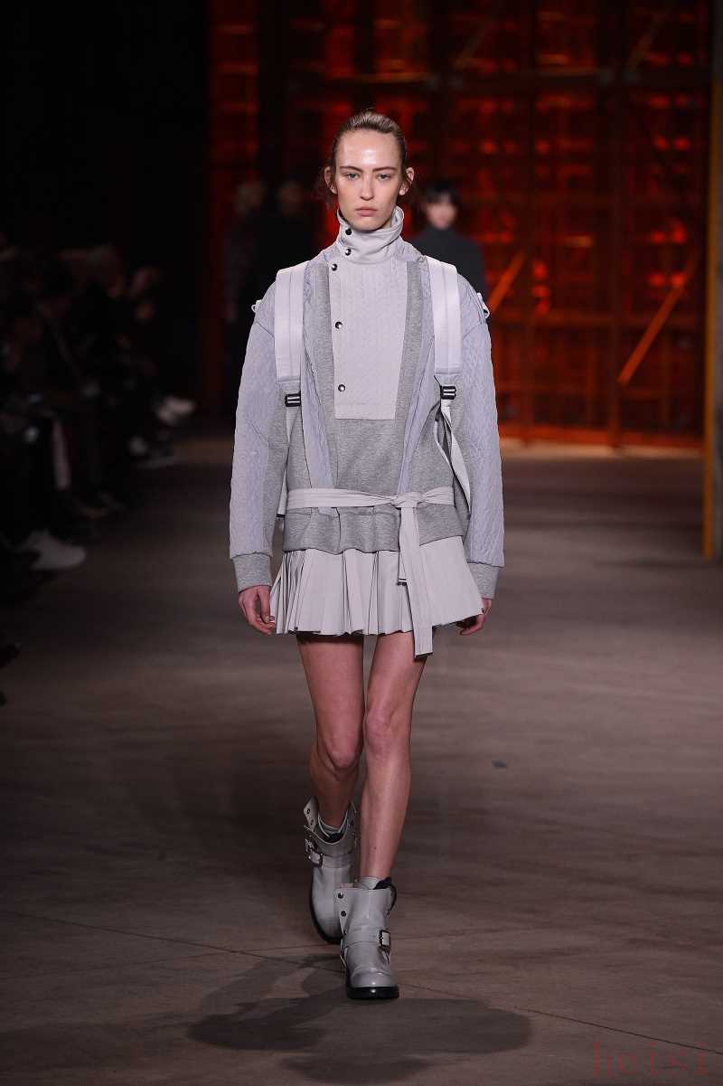 基于忍者裝束的設(shè)計靈感同樣也融入了這一季別出心裁亮相的女裝膠囊系列中。該系列主打以索帶凸顯臀部造型的皮革裙,以及搭配絎縫尼龍襯墊的丹寧束腰外衣。印花襯衫上的層壓工業(yè)金屬配件與短款褶皺無袖連衣裙的女性柔美姿態(tài)形成獨特的反差美。輪廓的設(shè)計靈感同樣源于日式和服文化。
