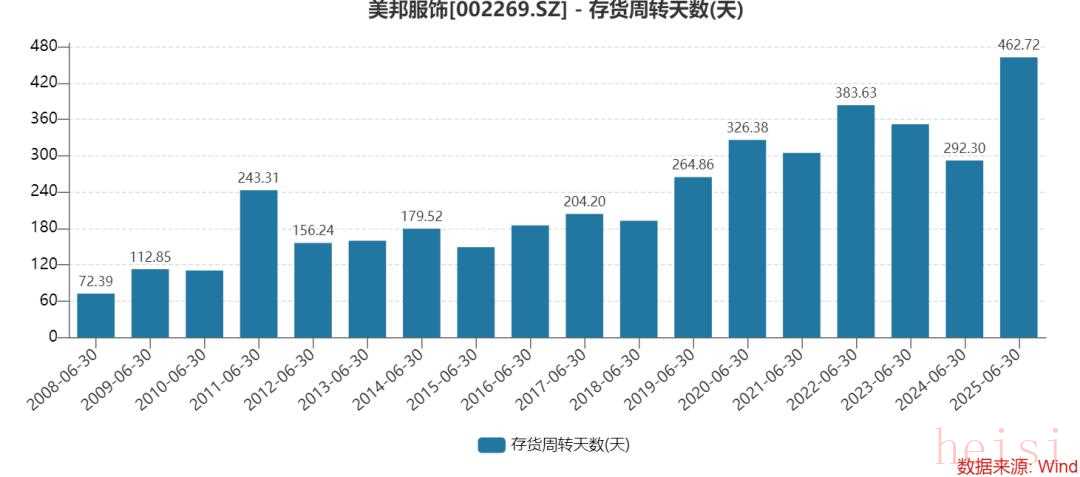 如今,美邦上半年的存貨周轉天數(shù)高達462天,超一年的時間,與其他品牌相比,更加“賣不動”了。