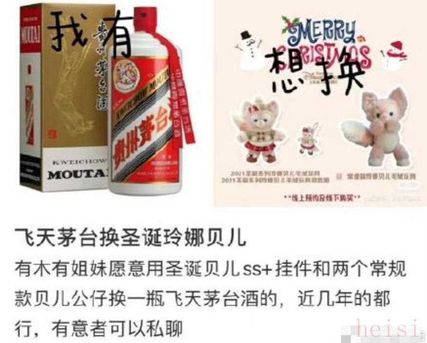 12月13日,有網(wǎng)友在某平臺(tái)上提出用一瓶茅臺(tái)來(lái)交換圣誕版玲娜貝兒掛件和常規(guī)版玩偶。有網(wǎng)友在評(píng)論區(qū)質(zhì)疑價(jià)格是否對(duì)等,而博主回應(yīng):“一瓶茅臺(tái)出廠價(jià)1499,我要的貝兒原價(jià)796,怎么不對(duì)等了?您是想用黃牛的價(jià)格來(lái)?yè)Q嗎?”對(duì)此,有網(wǎng)友評(píng)論:“好家伙!做夢(mèng)都沒(méi)想到2021年新一代理財(cái)產(chǎn)品竟然能向玩偶界發(fā)展。”