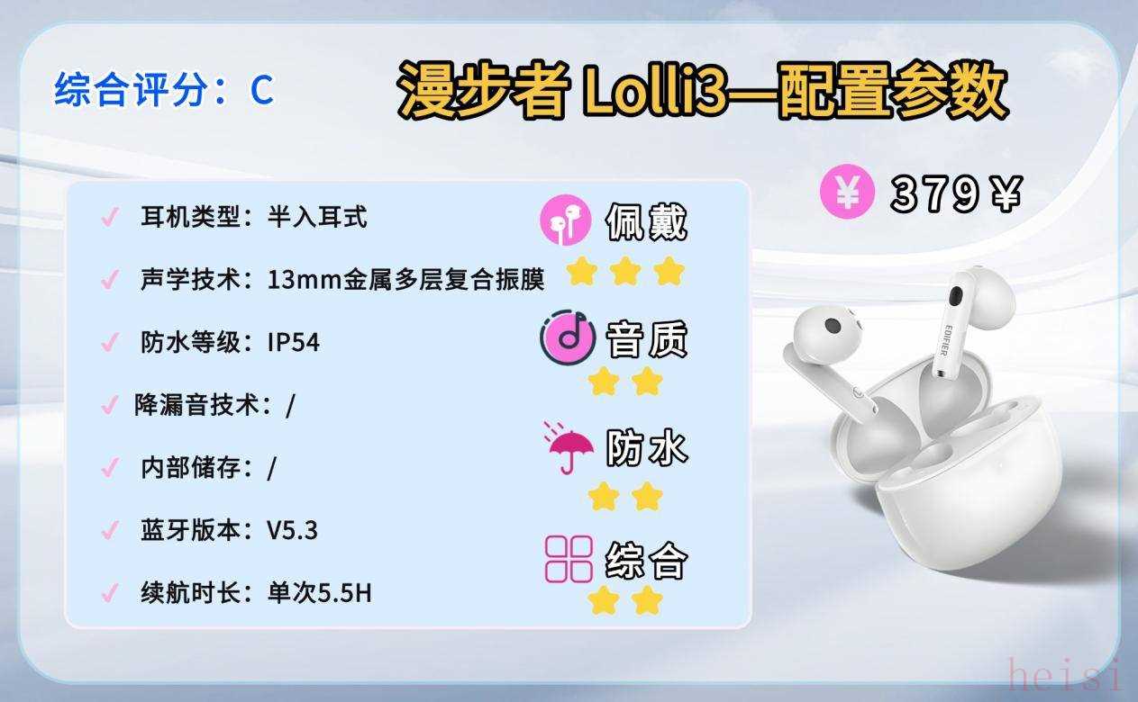 跑步耳機(jī)推薦2025出色款式6:漫步者Lolli3藍(lán)牙耳機(jī)