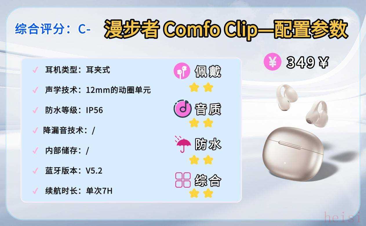 跑步耳機(jī)推薦2025出色款式3:漫步者Comfo Clip