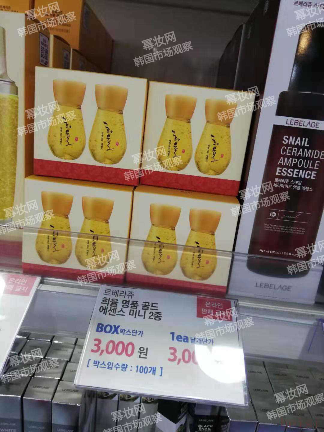 (冪妝網(wǎng) 韓國(guó)偵察兵 實(shí)地現(xiàn)場(chǎng)拍攝)?????美妝店近期最熱銷的產(chǎn)品主要是lebelage(拉貝爾)品牌的“24k黃金”系列,lebelage作為韓國(guó)護(hù)膚品牌,物美價(jià)廉,深受韓國(guó)女性消費(fèi)者的喜愛(ài)。