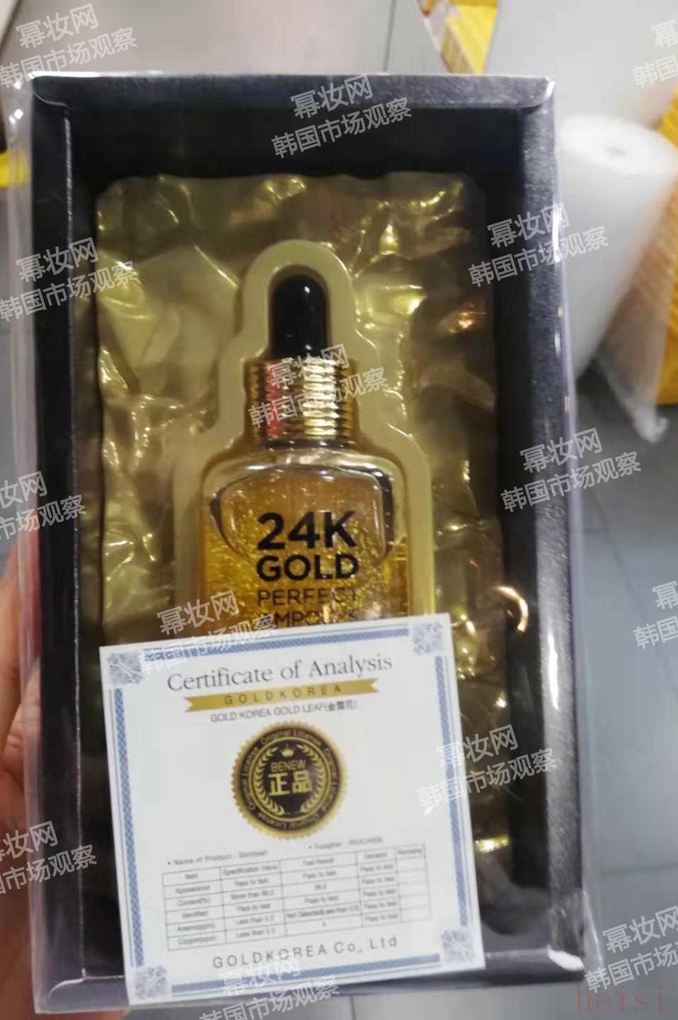 (冪妝網(wǎng) 韓國(guó)偵察兵 實(shí)地現(xiàn)場(chǎng)拍攝)這款產(chǎn)品主打“24k黃金”的概念,引起很多消費(fèi)者的關(guān)注,概念主要源于產(chǎn)品中含有24K純金,通過(guò)離子交換,有助于皮膚的新陳代謝。