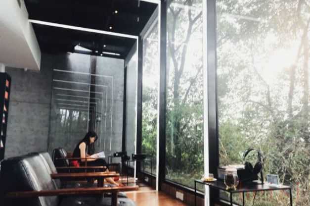 南之山書店:森林小書店,文藝青年打卡地。全落地窗讓你坐在室內(nèi)也能享受著森林的風(fēng)景,好生愜意。
