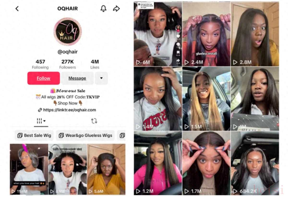 行業(yè)行至拐點(diǎn),TikTok Shop以內(nèi)容驅(qū)動(dòng)、閉環(huán)交易的范式出現(xiàn):短視頻在數(shù)秒內(nèi)即可呈現(xiàn)佩戴效果,直播實(shí)時(shí)承接興趣流量,購(gòu)買路徑被壓縮至一鍵成交。OQ Hair等平臺(tái)標(biāo)桿跑通方法論后,越來(lái)越多假發(fā)商家入駐TikTok Shop。有假發(fā)商家直言,TikTok Shop給行業(yè)迎來(lái)了新一輪的發(fā)展機(jī)遇。
