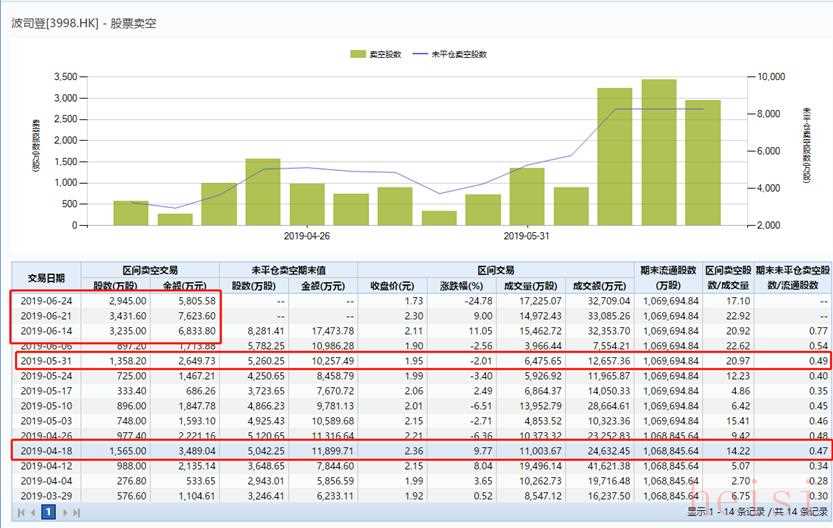 從效果上看,這是一次較為成功的做空狙擊。波司登股價25日以2.28港元開盤,后跌24.78%至1.73港元,67億港元市值蒸發(fā)。做空者憑借股價波動盈利滿滿。從Wind統(tǒng)計數(shù)據(jù)來看,波司登從今年4月起做空量就開始較大幅度上升。