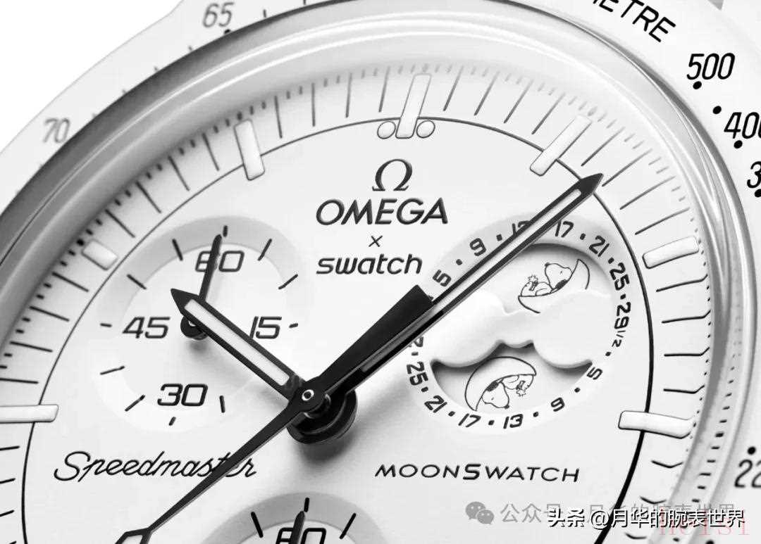Mission to the Moonphase 是第一款以史努比為特色的 MoonSwatch。史努比出現(xiàn)在月相小表盤上,并分享了一條只有在黑暗中通過夜光顯示的信息。手表背面還印有小獵犬的圖案。