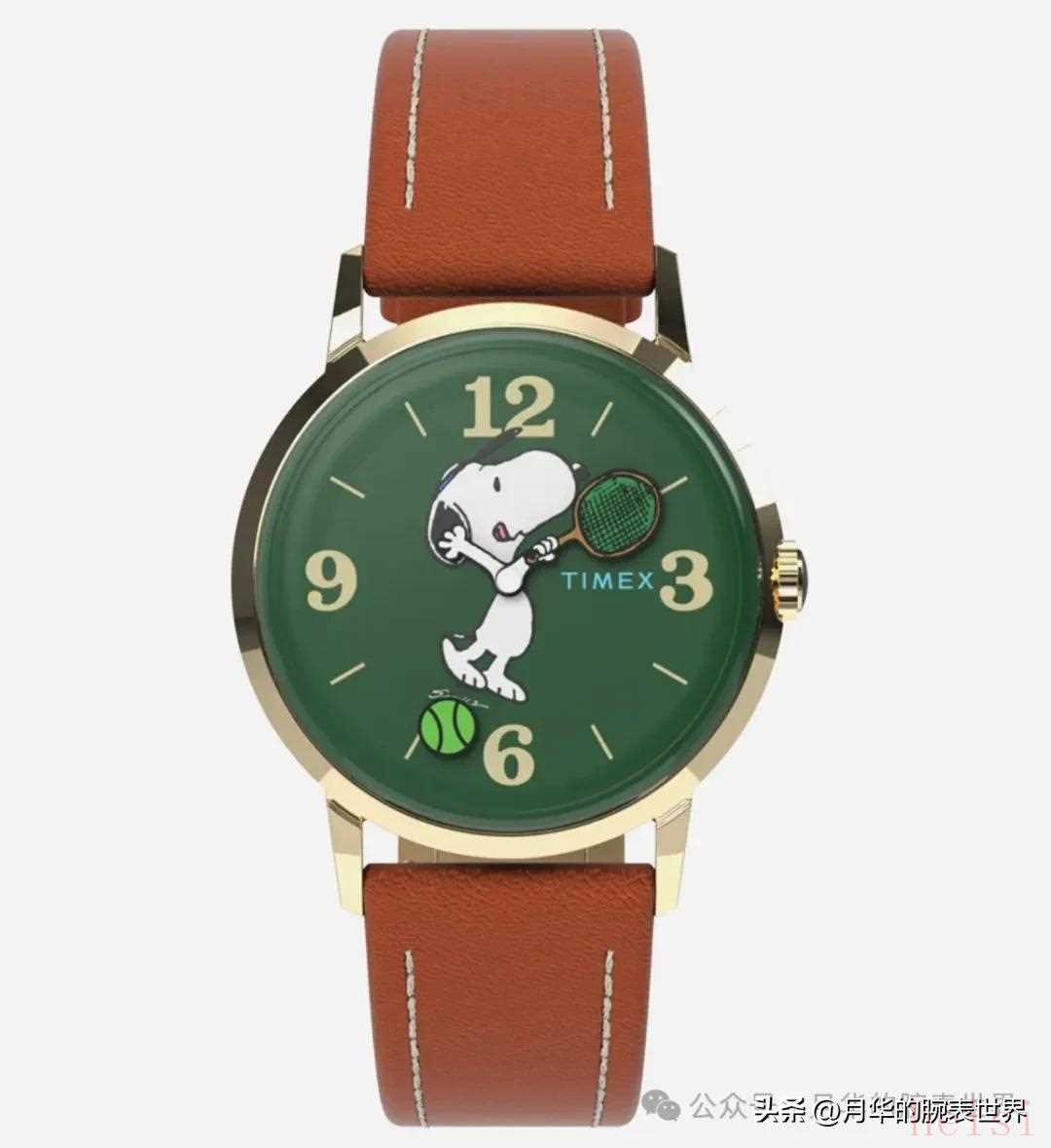 Timex Marlin 手動上鏈 x 史努比網(wǎng)球 34 毫米皮革表帶手表。這款手表售價僅為 229 美元,有多種醒目的顏色可供選擇。