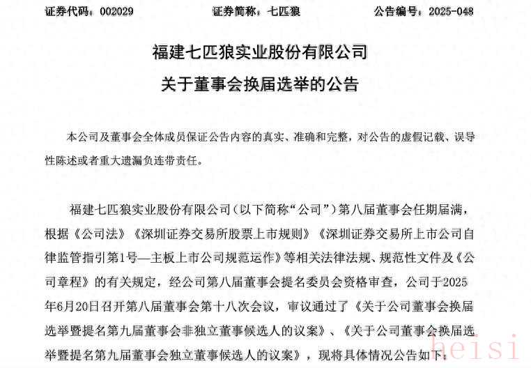 "核心事件:" 七匹狼董事會(huì)進(jìn)行重大調(diào)整(“大換血”)。