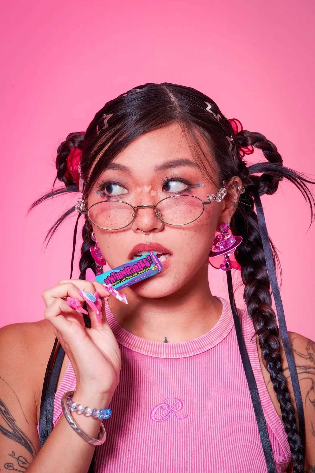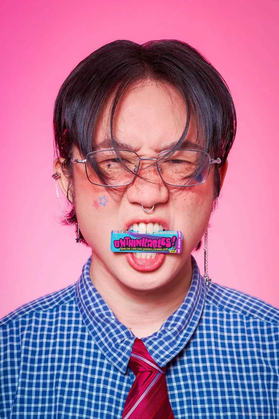 該項目的精妙之處在于其品牌和包裝設計。明亮奪目的粉色、紫色和藍色調,瞬間俘獲你的眼球。俏皮叛逆的基調在星形、心形和箭頭等涂鴉圖案中得到完美體現(xiàn)。包裝上醒目地印著“來自禁止口香糖的土地”,清晰地傳達了這一理念。該設計巧妙地利用了它所回避的禁令——禁令——作為主要的營銷噱頭。