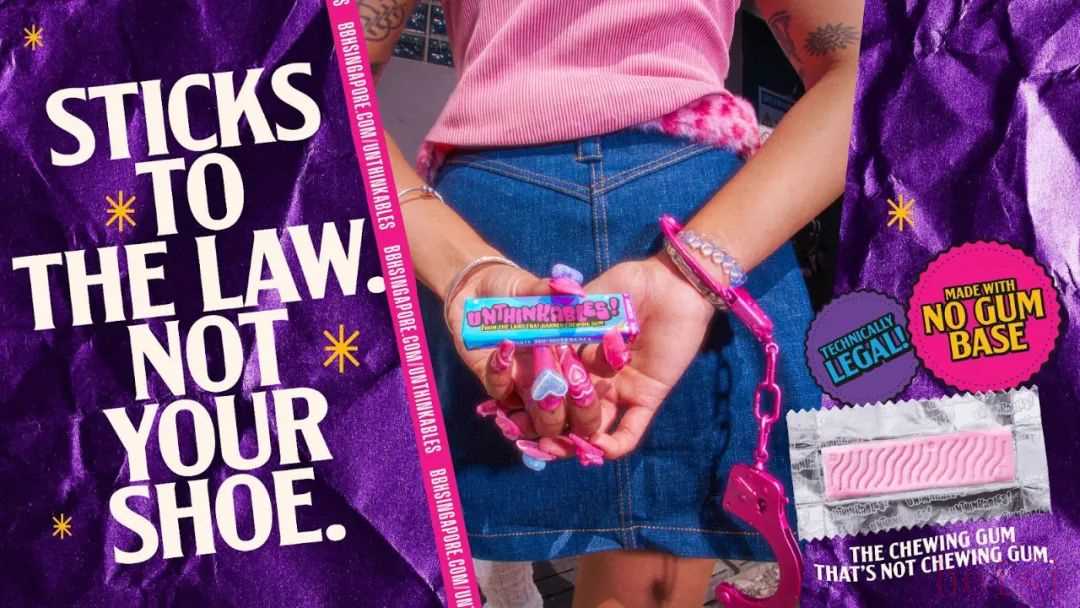 眾所周知,新加坡早在 1992 年就禁止銷售和進口口香糖,以防止破壞者將口香糖粘在火車門和電梯按鈕等公共場所。違反這項法律可能會被處以巨額罰款。那么,BBH 新加坡是如何解決這個問題的呢?他們創(chuàng)造了一款外觀、口味和咀嚼方式都與口香糖相似的產(chǎn)品,但卻沒有使用膠基。這種技術上的突破使其合法化,讓新加坡人能夠享受完整的口香糖咀嚼體驗,而無需承擔罰款的風險。