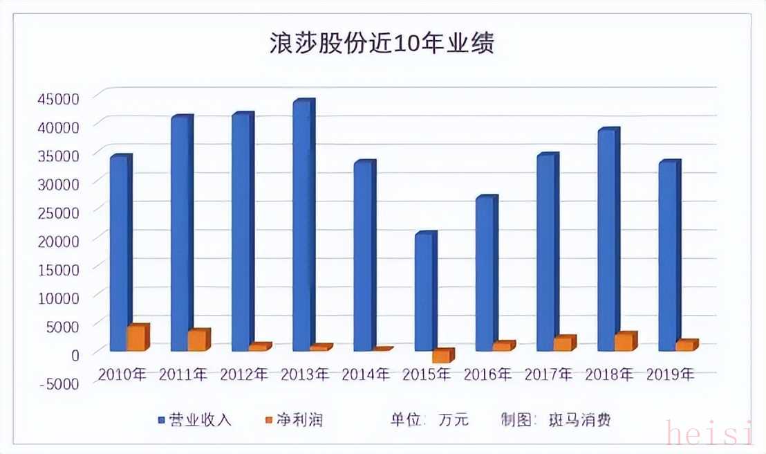 這種挫敗深深體現(xiàn)在了業(yè)績報表上。自2010年浪莎實(shí)現(xiàn)3.41億元、同比57.09%的營收增長后,2011年至2013年,浪莎股份的營收增速便下降為20.25%、1.27%、5.51%。2014年,浪莎營收下跌24.48%至3.307億元,歸屬凈利潤同比下跌76.03%至195.9萬元。到2015年,浪莎營收僅為2.05億元,同比下滑37.94%,歸屬凈利潤同比暴跌1155.97%至虧損2068萬元。