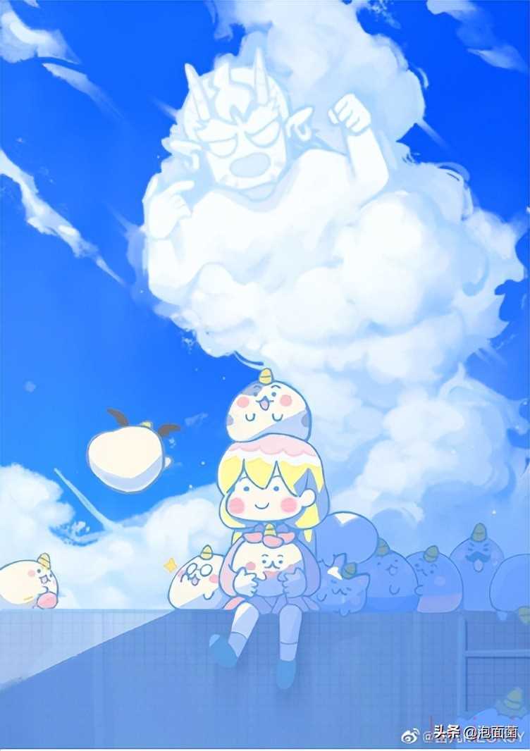 @苗幾MEOK3Y 畫了一幅經(jīng)典日漫風(fēng)的藍(lán)天白云與團(tuán)團(tuán)奇米莫,地獄先生化身棉花糖般的云朵,也變得可愛起來了~