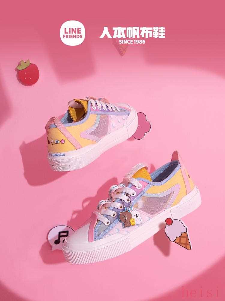當(dāng)然還不能少了這雙與LINE FRIFNDS的聯(lián)名款。它是在基礎(chǔ)款帆布鞋的基礎(chǔ)上采用各種卡通形象作點(diǎn)綴,比如布朗熊、可妮兔,趣味十足。而且設(shè)計師還將透氣MONO紗與帆布相結(jié)合,既透氣又舒適,很適合夏季穿。社長最喜歡的還是它的配色,尤其粉色完全就是妥妥的少女心,讓人忍不住心動!