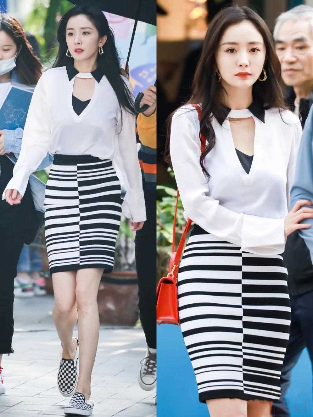 像楊冪就穿過很多次回力。當(dāng)時她的新劇路透中,這一身黑白配的職業(yè)裝搭配回力的棋盤帆布鞋的造型就美出了圈,并且這雙鞋只有69元,實(shí)實(shí)在在的顏值抗打價格也抗打。