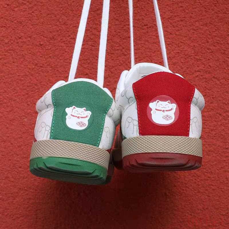 除了這種經(jīng)典款,大孚飛躍的這雙一百來塊的招財貓聯(lián)名款也很香。它的設(shè)計是左右紅綠鴛鴦雙色搭配,復(fù)古感盡顯高級,再配上不對稱的紅綠顏色logo,整個設(shè)計感還是很足的。日常搭配也是完全沒問題,無論你是走休閑風(fēng)格還是甜美風(fēng)格,都能和它組cp。