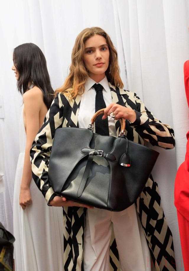 RalphLauren的麂皮大包反而最“老干部”。6990塊,黑白拼色,木頭手柄,像從華爾街電影里走出來的。