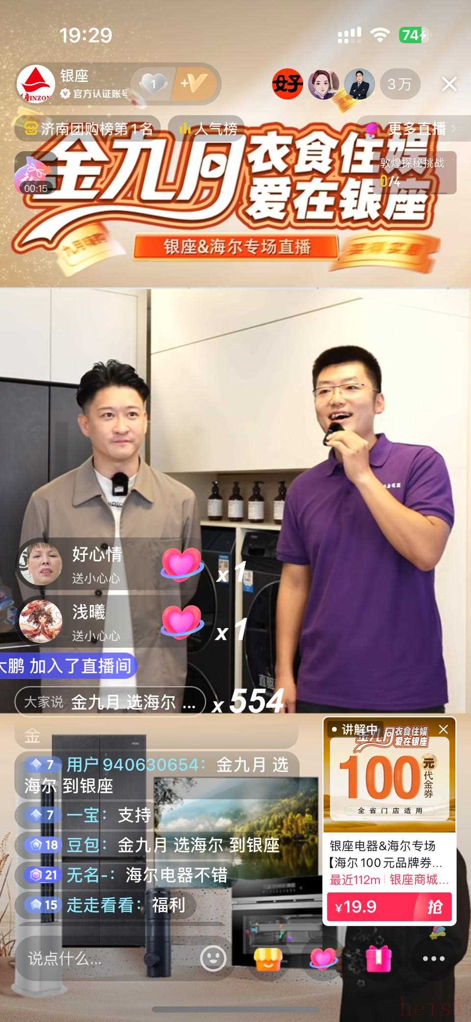 2024年9月5日,7小時(shí)不間斷直播,海爾集團(tuán)領(lǐng)導(dǎo)和明星曹云金空降釋放力度,本地曝光1110萬。