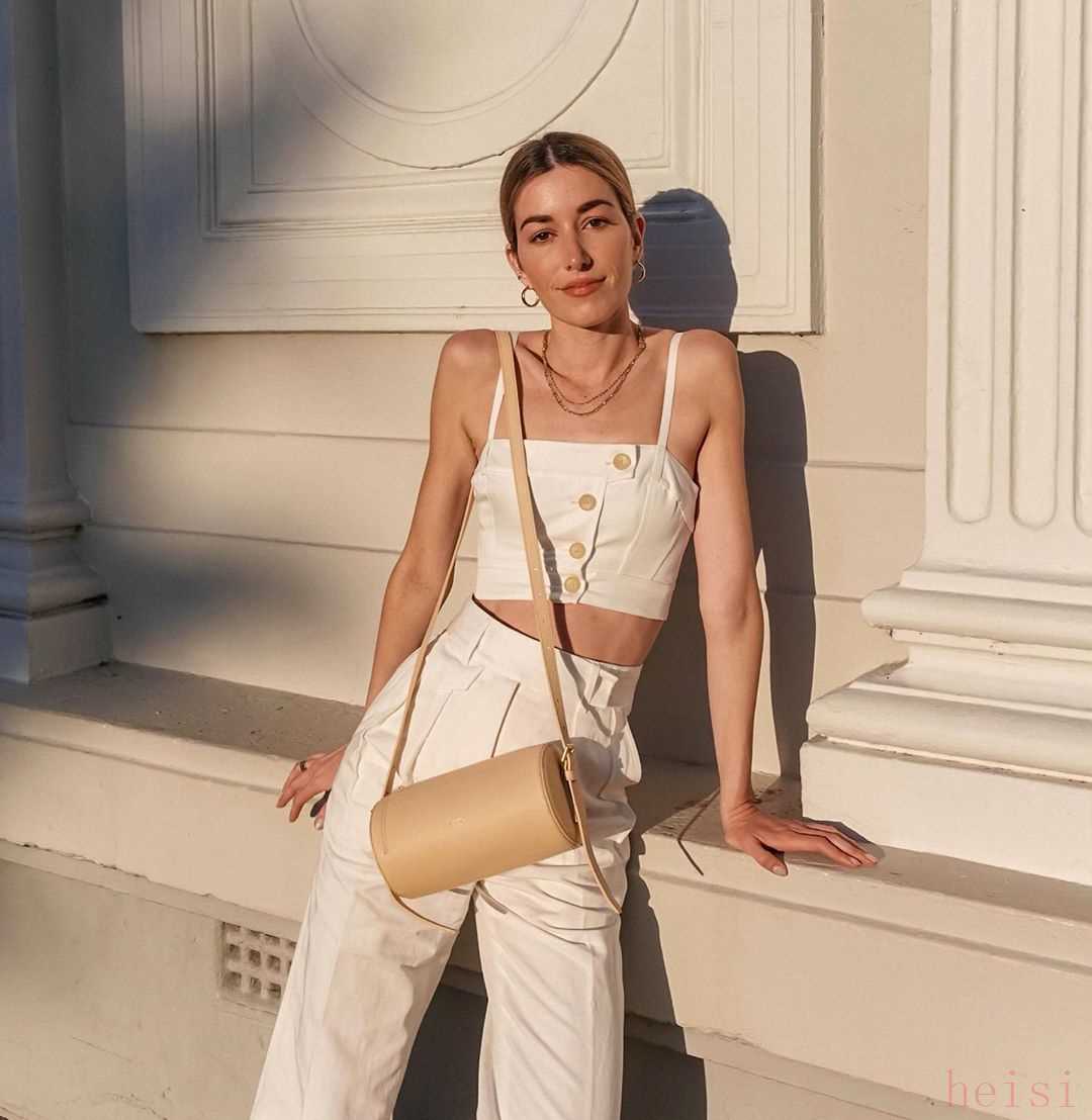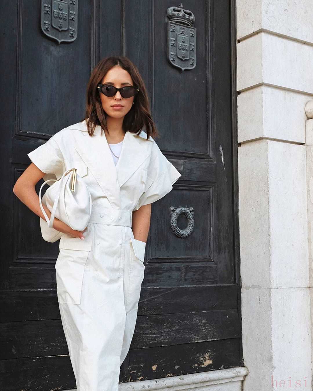 說起來它其實是斜挎包的設(shè)計,但從模特的背法上可以看得出來,這樣手拿的氣質(zhì)氣場會更妙一點。一身淺杏色或者是裸色調(diào)的西服套裝,搭配上這樣一個同樣淺色系設(shè)計的小包,既能夠凹氣場,又非常的實用。